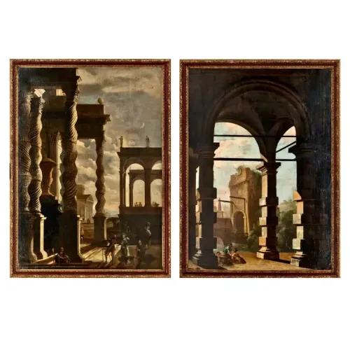 Pair of 17th Century Italian Capriccios of Ruins Follower of Codazzi
