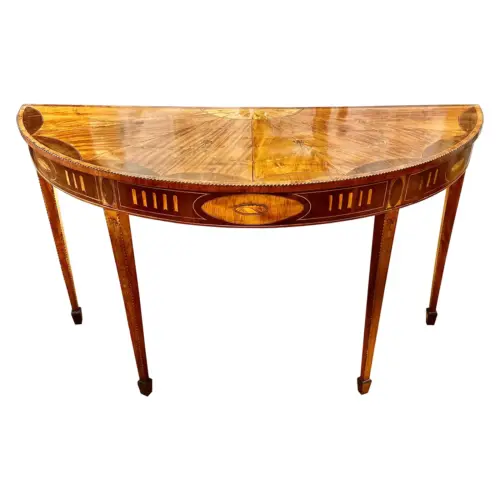 18th Century Satinwood Neoclassical Inlaid Demilune Console Table