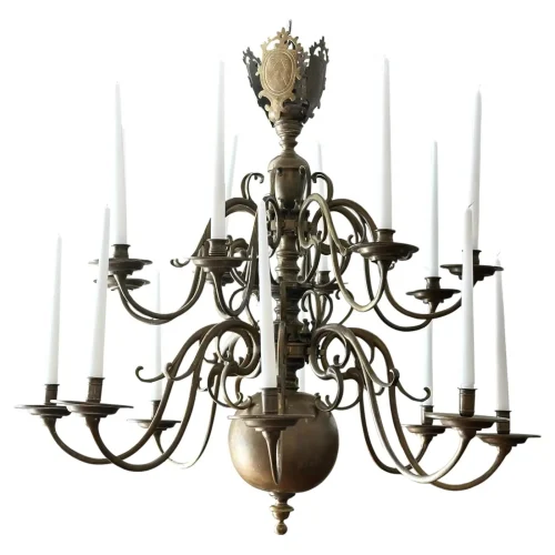 19th Century Flemish 16 Light Brass Chandelier with Ducal Arms