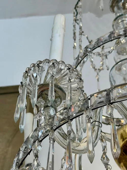 18th Century Italian Giltwood, Metal and Rock Crystal Twelve Light Chandelier