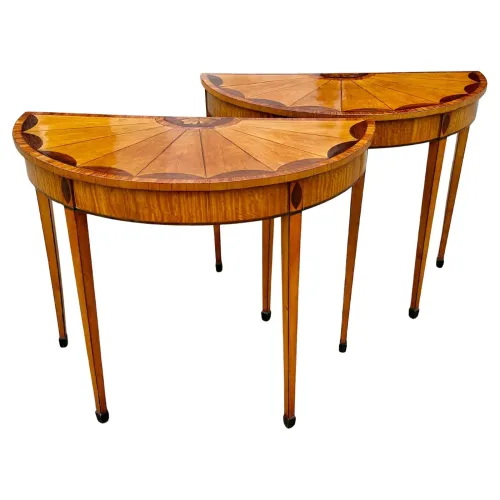 Pair of 19th Century English Satinwood Demi-lune Tables