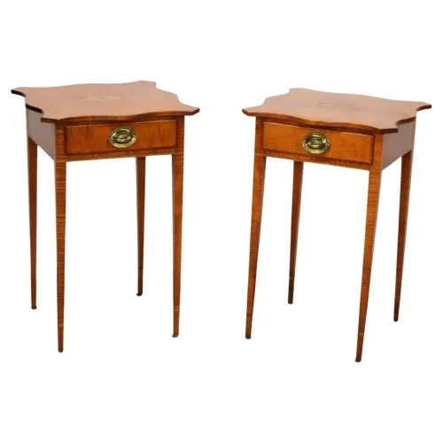 Pair of American Federal Style Tiger Maple Side Tables